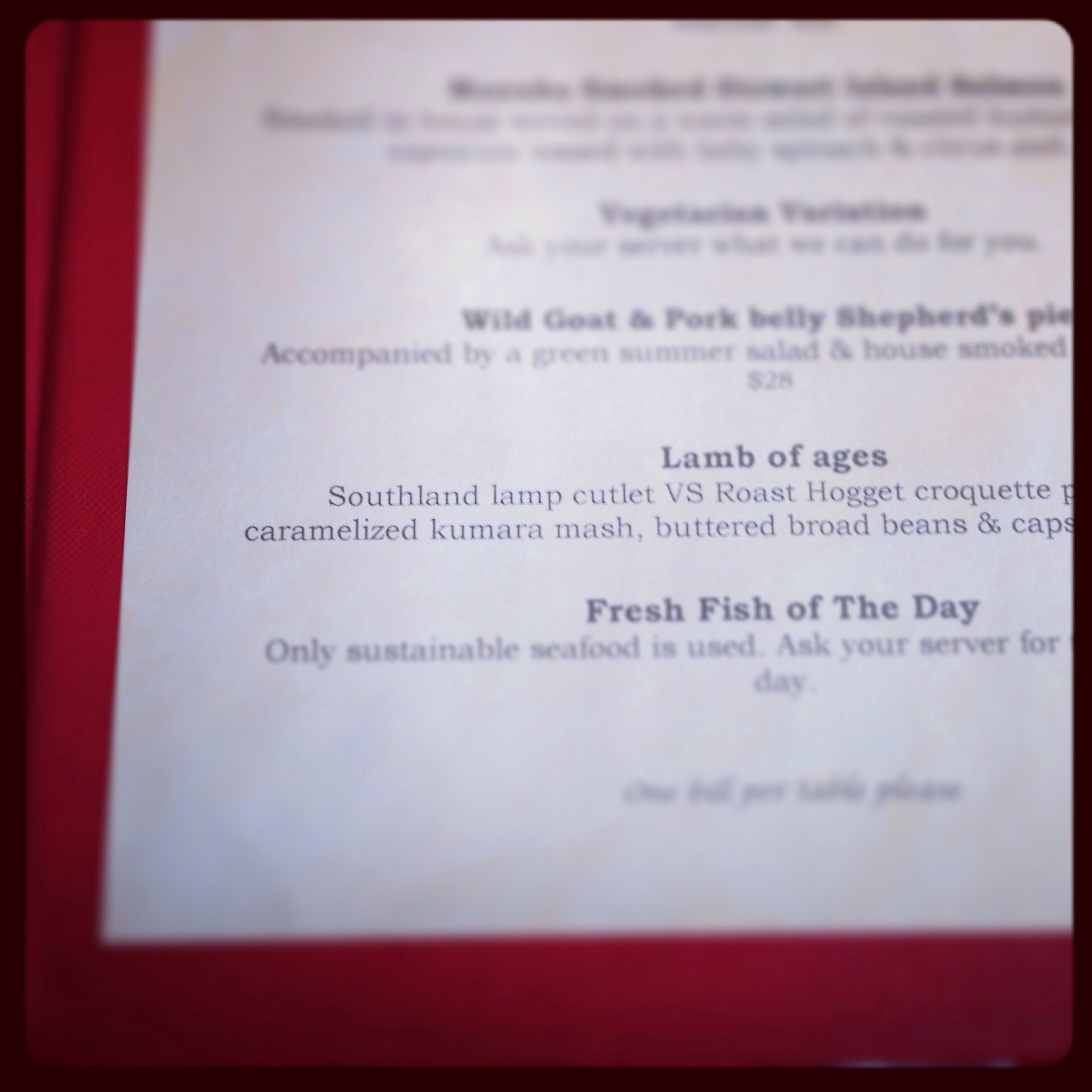 For our special day we chose the honeymoon suite at Dock Bay Lodge in Te Anau which was so divine and looked out over their beautiful grounds to the golf course and across to the lake. We booked dinner at the very best restaurant in Te Anau: Redcliff Cafe. (I did adore the typo in the menu – I love lamp!)
