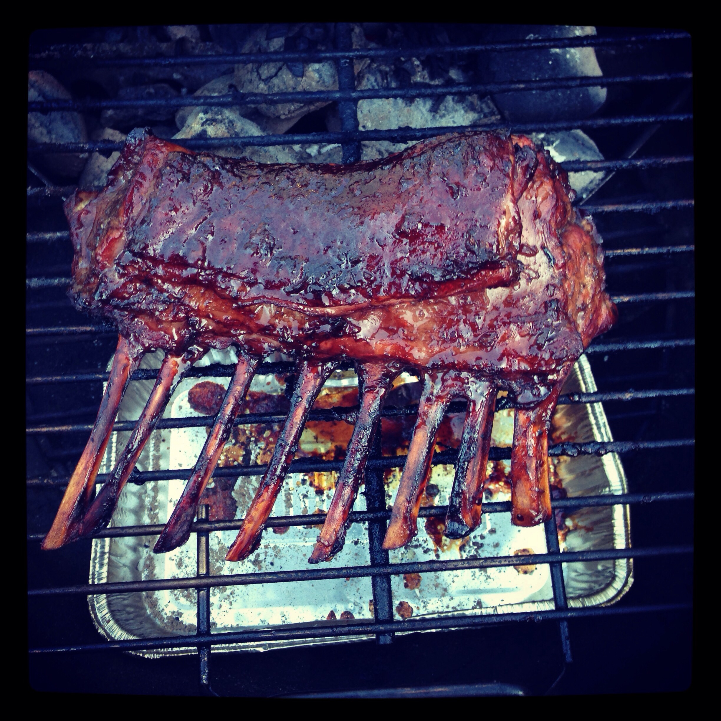 Last night I was in the mood to BBQ. I had marinated a lamb rack the night before improvising using the herbs and spices from our kitchen cupboard (that us when I discovered that I was ‘collecting’ tarragon). Over 1 hour and a few minutes I smoked the lamb rack until it was just right. I have never in my life wanted to gnaw on bones like I did after that meal. The marinade and the smoke took a good cut of nest and turned it into something indescribable. The meat practically fell off the bones and straight into my stomach.