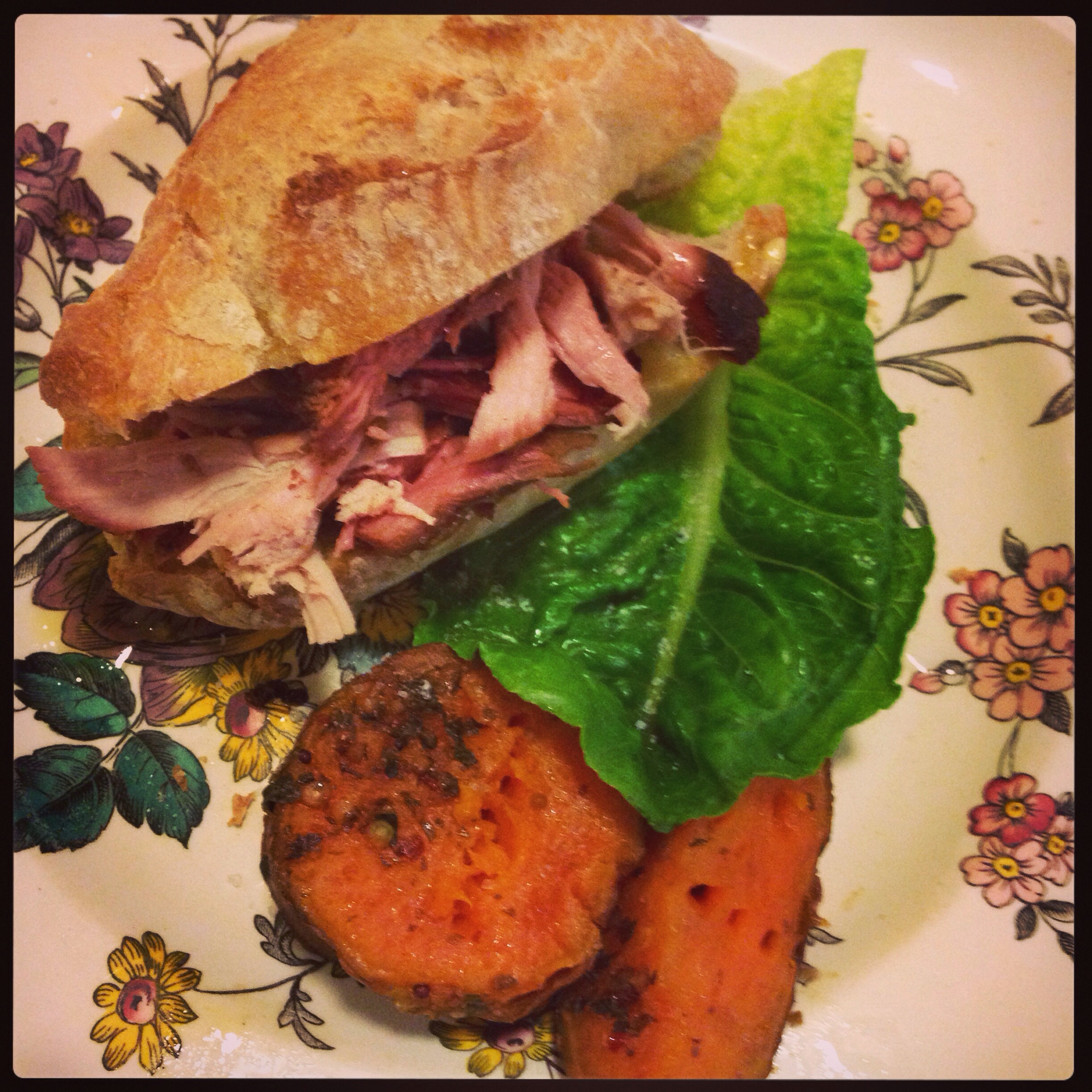 Fast forward 2.5 – 3 hours and the Husband and I were sitting down to a meal of salad, melt-in-your-mouth smoked kumera and smokey pulled pork.