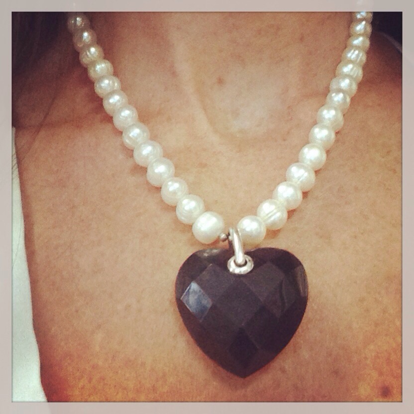 Today I was very much inspired by St Valentine and chose my accessory with cheesy love motives in mind. I went with a faceted onyx heart necklace set amongst a strand of raw and natural looking freshwater pearls. (This iconic piece is called ‘Braveheart’ and is from Kagi – it was designed to support the Child Cancer Foundation.)