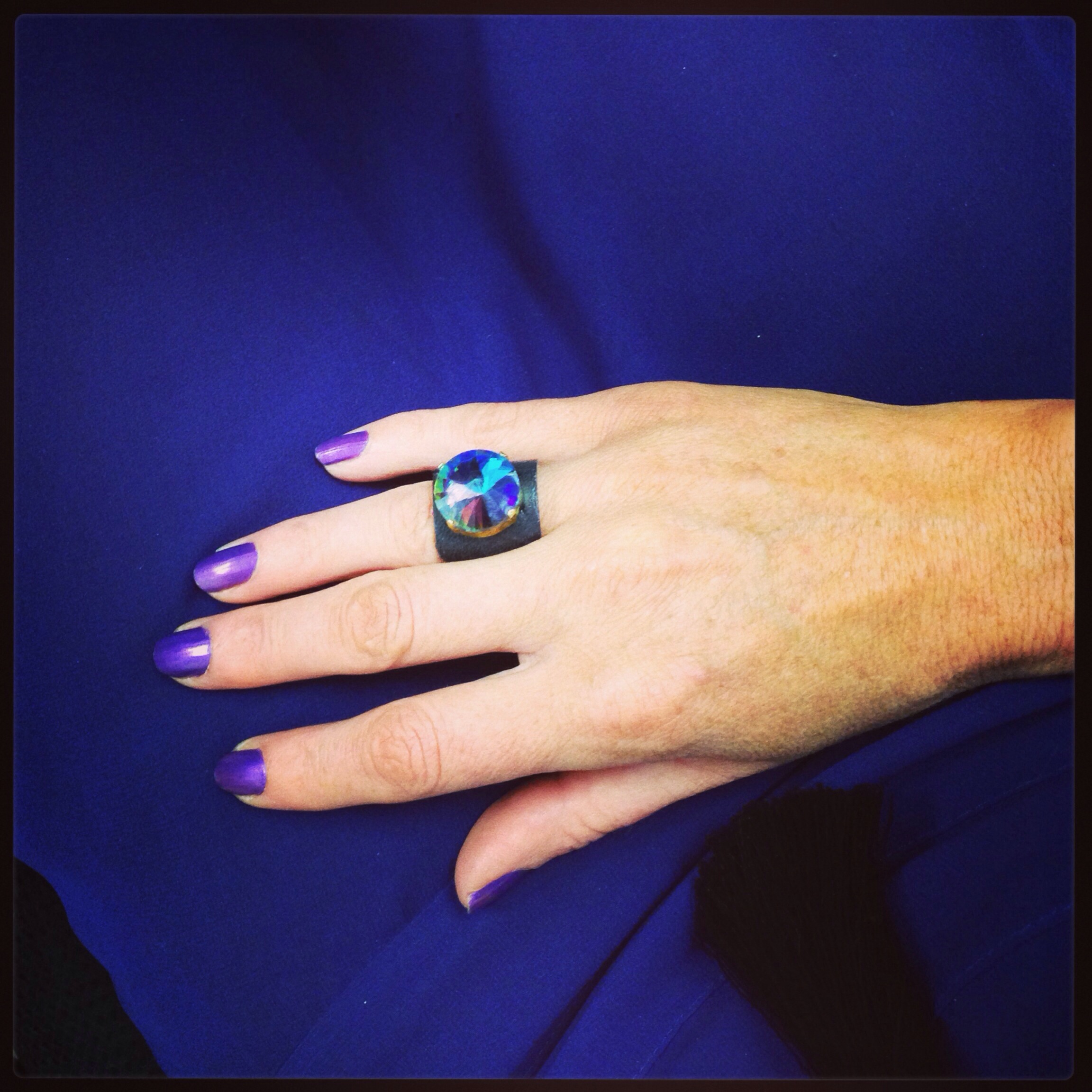 This leather and gemstone ring gives my purple silk Zambesi dress a bit of zing.